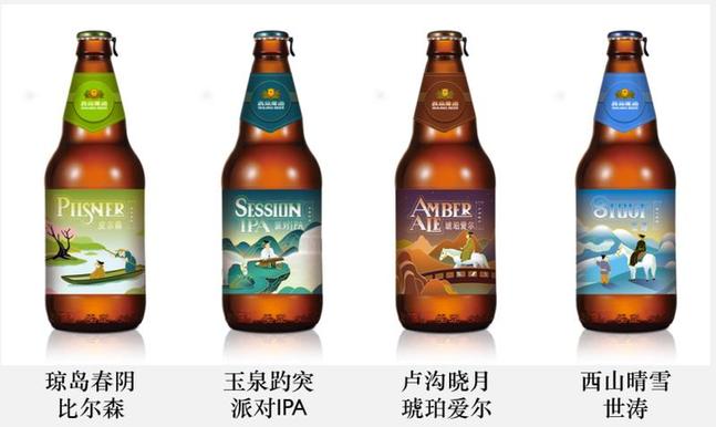 “燕京八景”文創產品,是燕京啤酒對中國傳統文化的深度解讀與提煉。在創意上選取了“燕京八景”中的四景進行延伸,結合古人的描述和景色自身的特色,傳達出中國古代山水的絕倫秀麗;在設計上借鑒了古代山水畫的造型特點,極具意境。顏色上則采用具有北京代表的景泰藍的上色方式,描邊采用金色,突顯皇家貴氣;同時,借意于古代“詩”“酒”不分家的美談逸聞,燕京啤酒選擇了自有成熟精釀產品搭配“燕京八景”的書畫設計,為文化創意理念賦予新的消費品內涵,使其更適合現代社會的傳播。