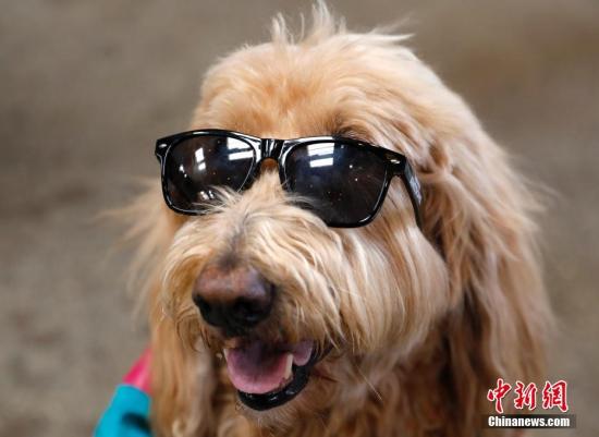 資料圖:一只寵物狗戴上墨鏡“扮酷”。中新社記者 劉關關 攝