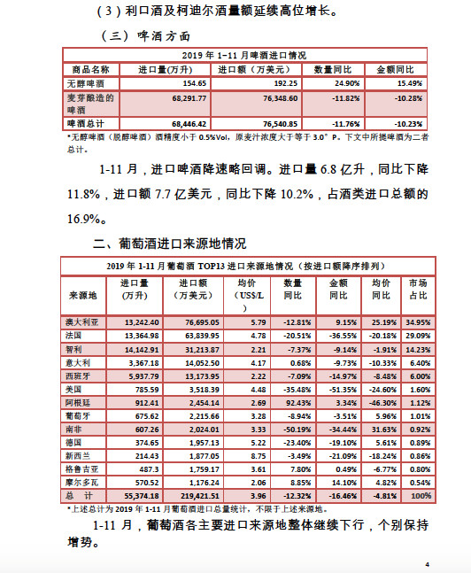 尼酒類企業對進口酒關稅下調政策表...